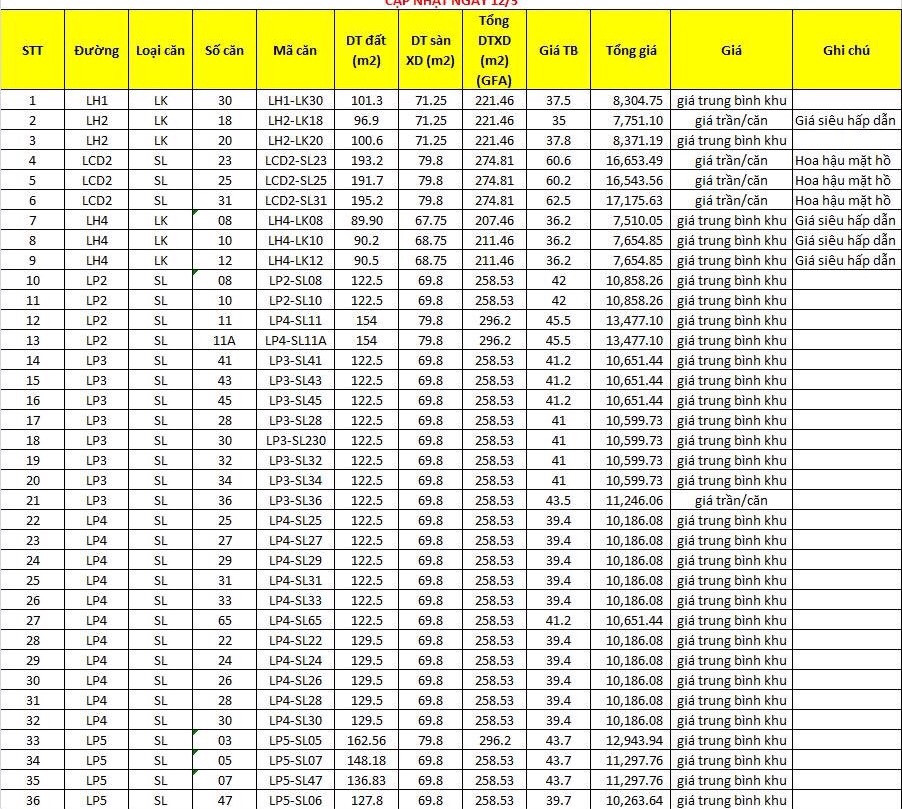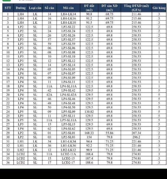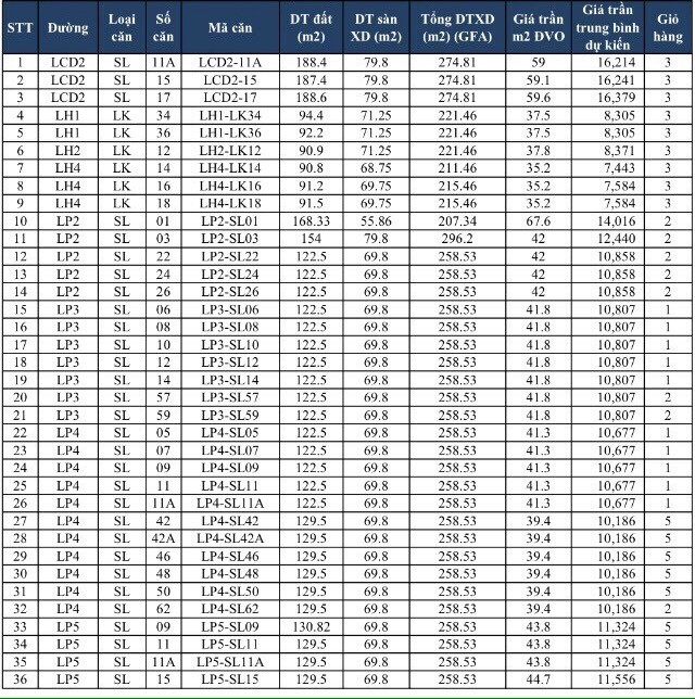 SƠ ĐỒ PHÂN KHU VÀ SỐ LÔ RA HÀNG ĐỢT 1