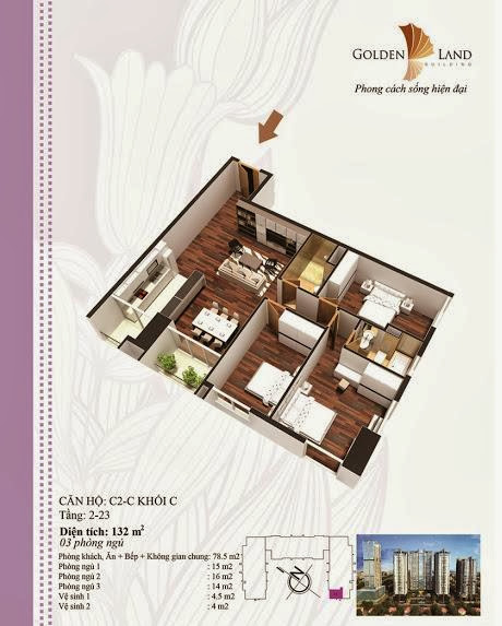 - Chung cư Golden Land một vị trí đắc địa giữa lòng hà nội với giá hợp lý 24 triệu/m2 đã có VAT, tổ hợp chung cư golden land bao gồm 3 tòa chung Cư A (27 Tầng) , B và C (25 Tầng) và 1 tòa văn phòng + khách sạn 5 sao đạt tiêu chuẩn quốc tế, Khối đế tòa A, B, C của golden land được thiết kế thông nhau dùng chỗ để ô tô và xe máy 3 tòa có chung 1 bể bơi 4 mùa miễn phí cho các căn hộ chung cư, các căn hộ được thiết kế hiện đại không gian thoáng mát do cty Archipel - Pháp.