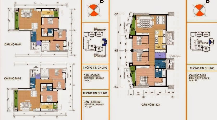 Mặt bằng căn hộ B- i01, i02 148,64m2 ; i03 115,13m2